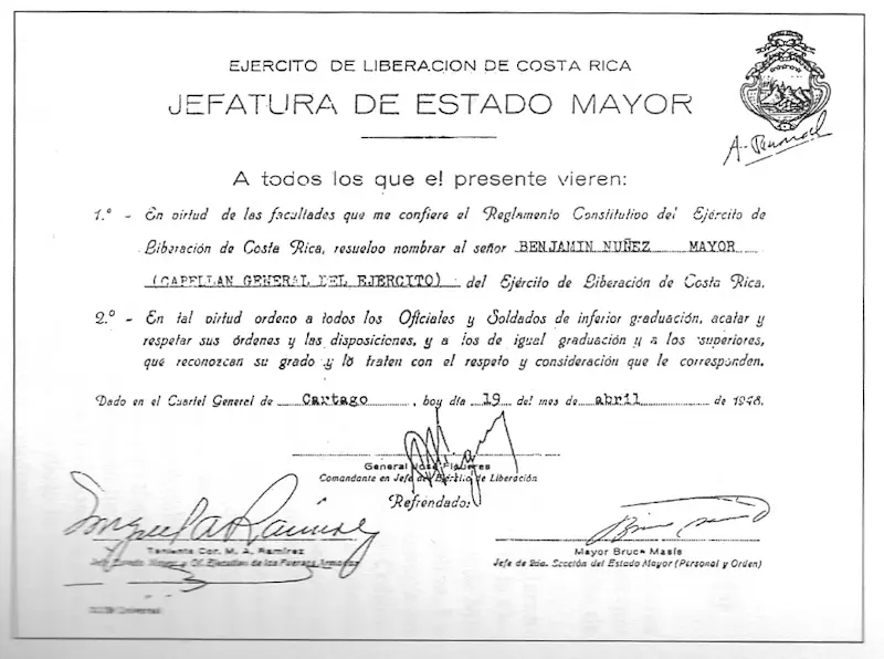 Durante la Revolución del 48 se desempeñó como Capellán del Ejército de Liberación Nacional, y tuvo un destacado papel como negociador plenipotenciario para la firma de la capitulación del Gobierno.