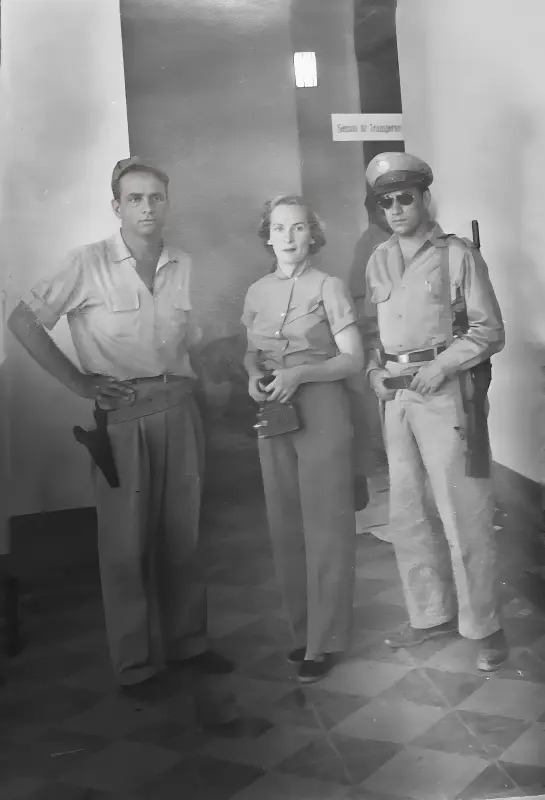Los Chiles, 1955. Terminada la invasión, grupo de soldados antes de abordar el avión de LACSA que les traería de regreso a San José.