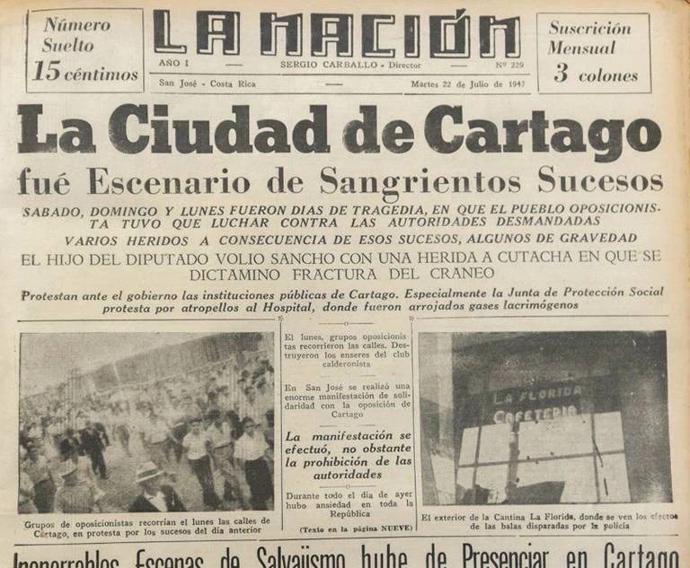 El 20 de julio, después de haber atacado con furia a unos comunistas que gritaron “¡Viva Calderón Guardia!”, un grupo de jóvenes de la Oposición se enfrentó a la policía. Más tarde, La Tribuna , diario procalderonista, denunciaría que reconocidos dirigentes oposicionistas habían repartido licor entre sus seguidores.